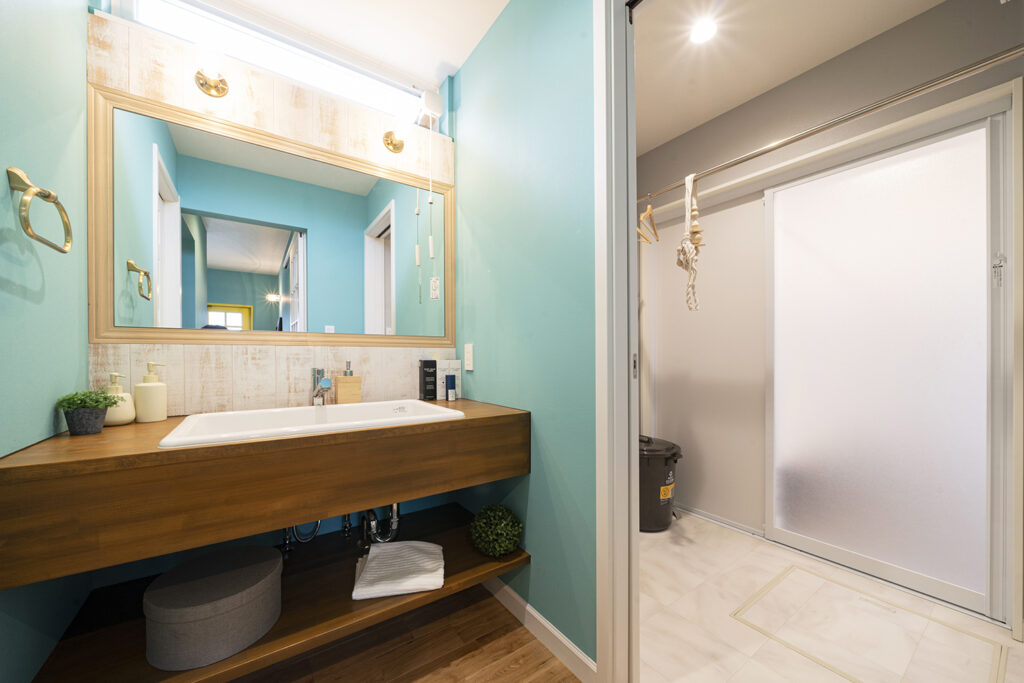 洗面スペースの隣は、脱衣室兼洗濯スペースとなっております。