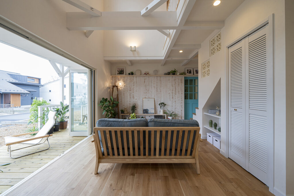 梁見せ天井の「梁」をホワイトにすることでお部屋の雰囲気にもとても合って爽やかです。