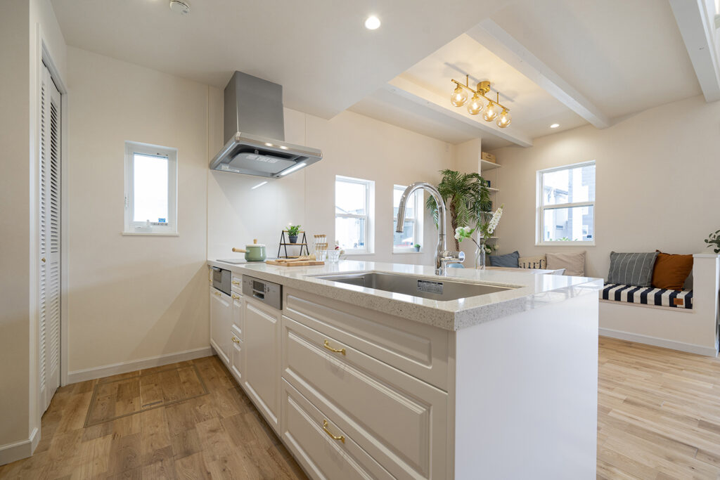 こちらもお部屋の雰囲気に合わせた白を基調とした造作キッチンです。